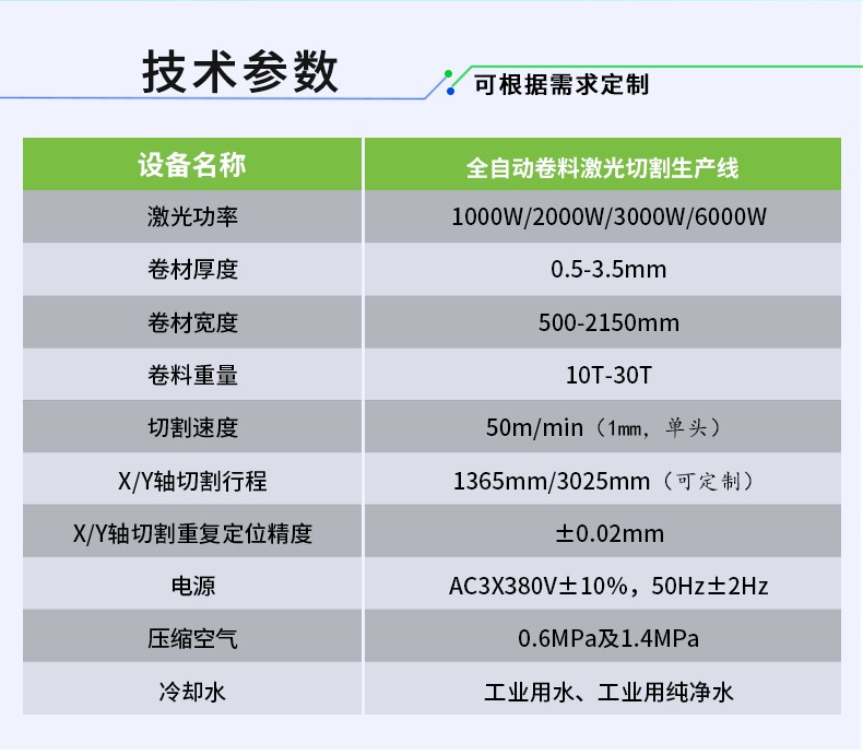 全自動(dòng)卷料精密激光切割設(shè)備,由開卷機(jī)、校平機(jī)、送料機(jī)、激光切割機(jī)、廢料處理裝置、液壓氣動(dòng)系統(tǒng)及電氣控制系統(tǒng)組成。特別適合對(duì)金屬卷材的精密切割,廣泛應(yīng)用于機(jī)械加工、機(jī)箱機(jī)柜、建筑幕墻、家具門窗、裝飾材料、食品機(jī)械、3C、家用電器、汽配、五金制品、廣告等行業(yè)。